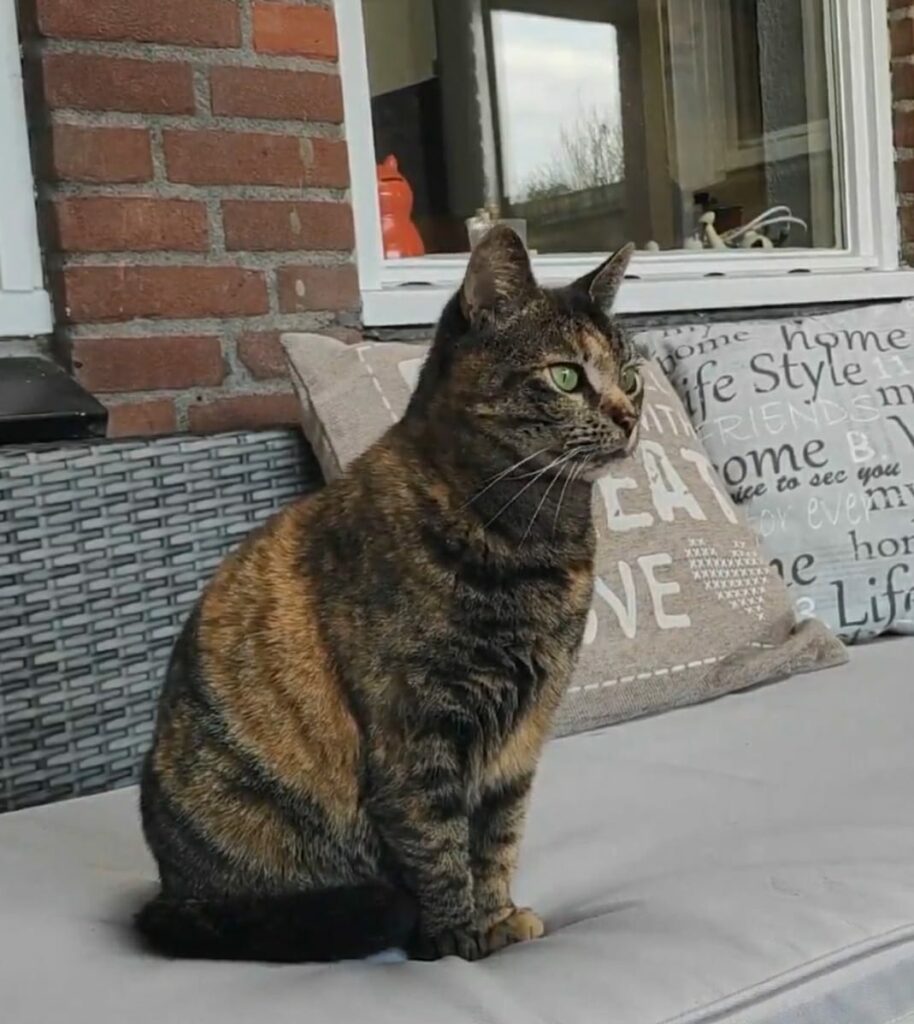 Syndra is de kleinste van het stel, maar dat is alleen in formaat. Ze is een echte tortie met alles wat daarbij hoort. Maar als ze in een knuffelbui is dan heb je daar maar mee te leven en je wordt geknuffeld. Of je dat nou wil of niet. Zij is de enige die los buiten komt en doet heel hard haar best om al het ongedierte in de buurt te bestrijden.